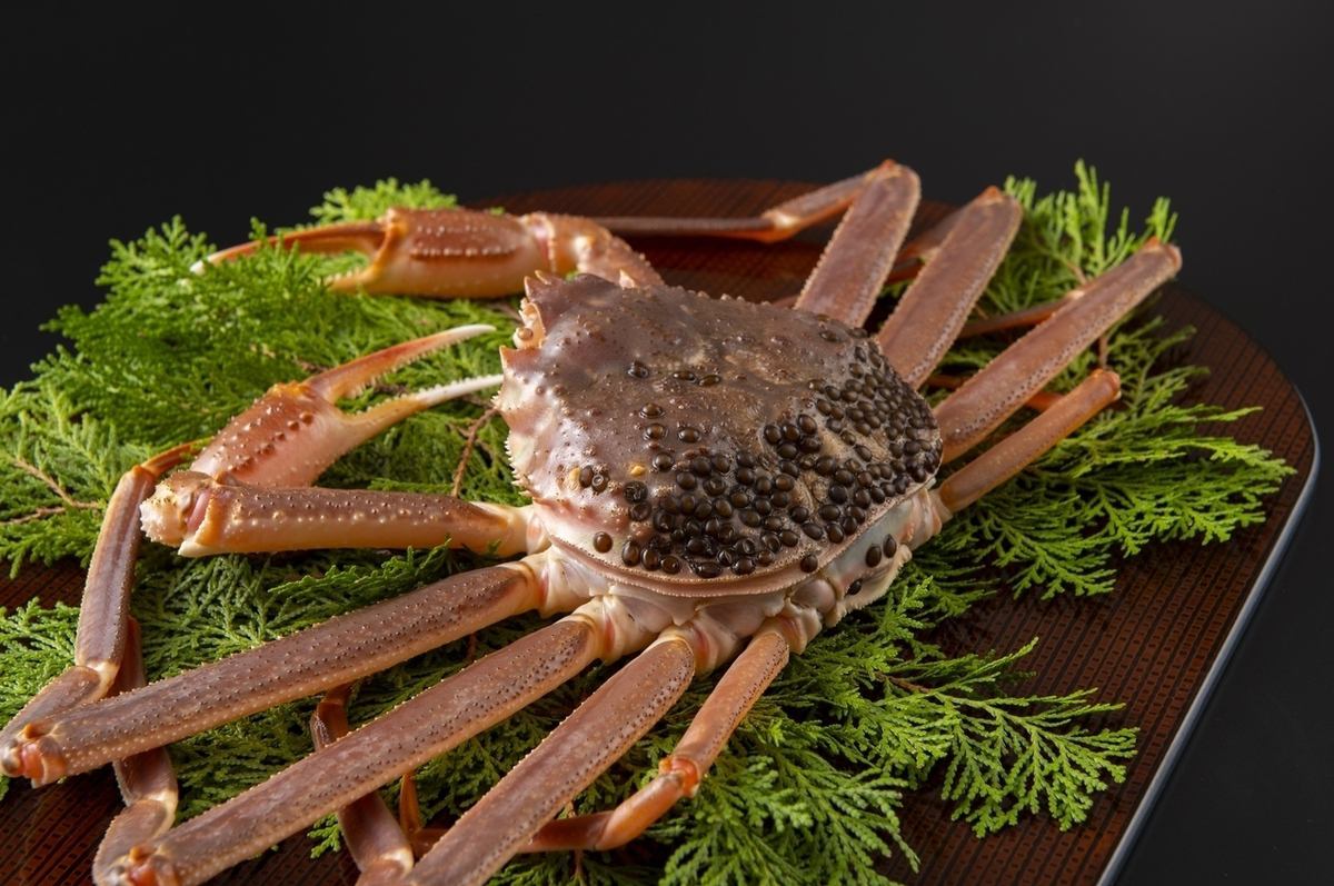 게의 풀 코스에서는 모든 조리법으로 게의 매력을 즐길 수 있습니다.신선한 털게의 회는, 엄선한 매입처와 관리 방법에 가세해 크기에도 배려한 것이 아니면 맛볼 수 없는 일품.풍부한 단맛이 입안에서 퍼집니다.찜, 구이, 튀김 등 다양한 요리 방법으로 완성한 게 요리를 즐겨 주세요.